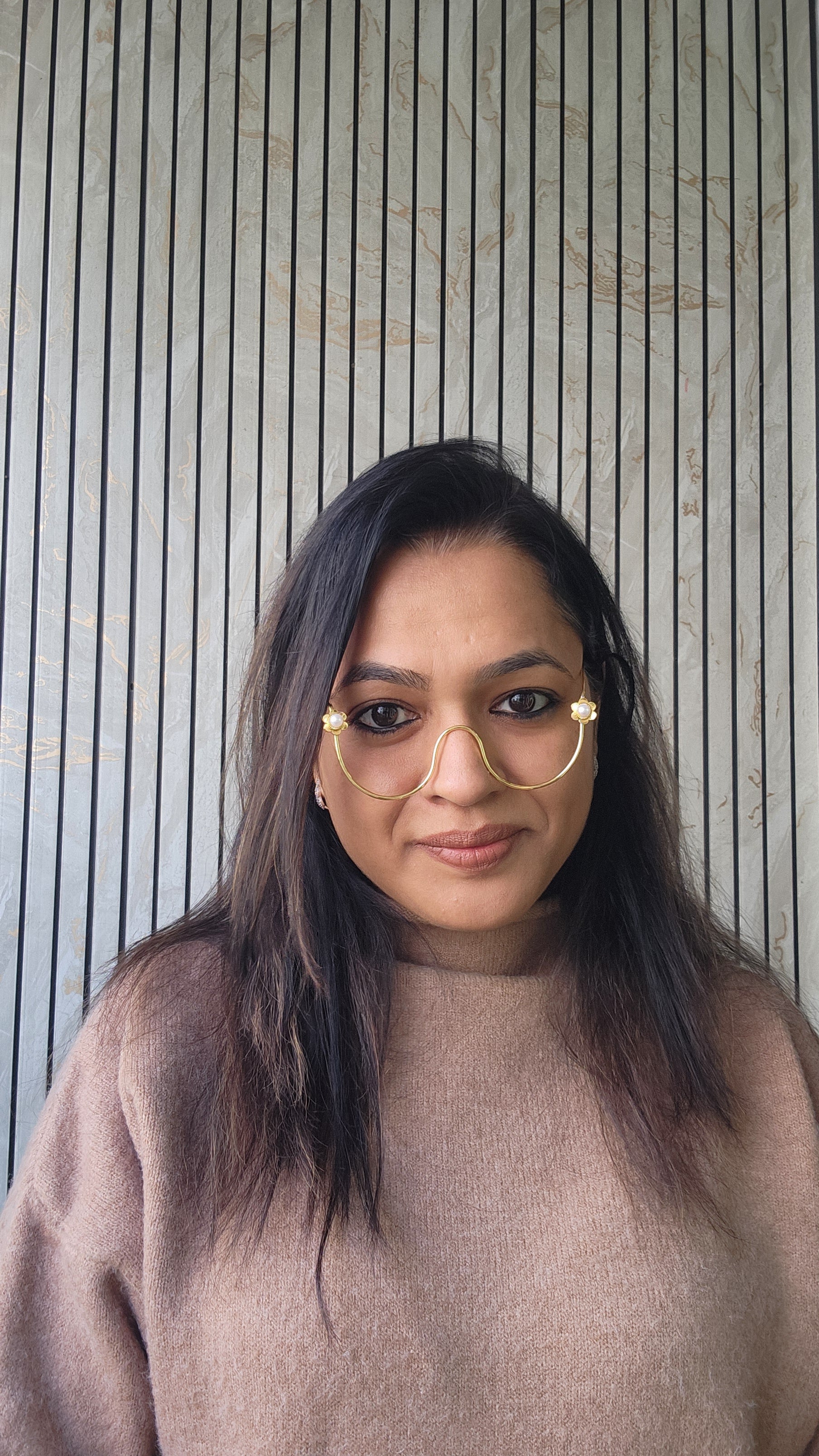 Elira is designed for the modern bride who loves subtle luxury. Crafted with fine gold curves and dainty pearl accents, this lightweight bridal faceletsoftly frames your face and adds a natural glow — without overpowering your look.