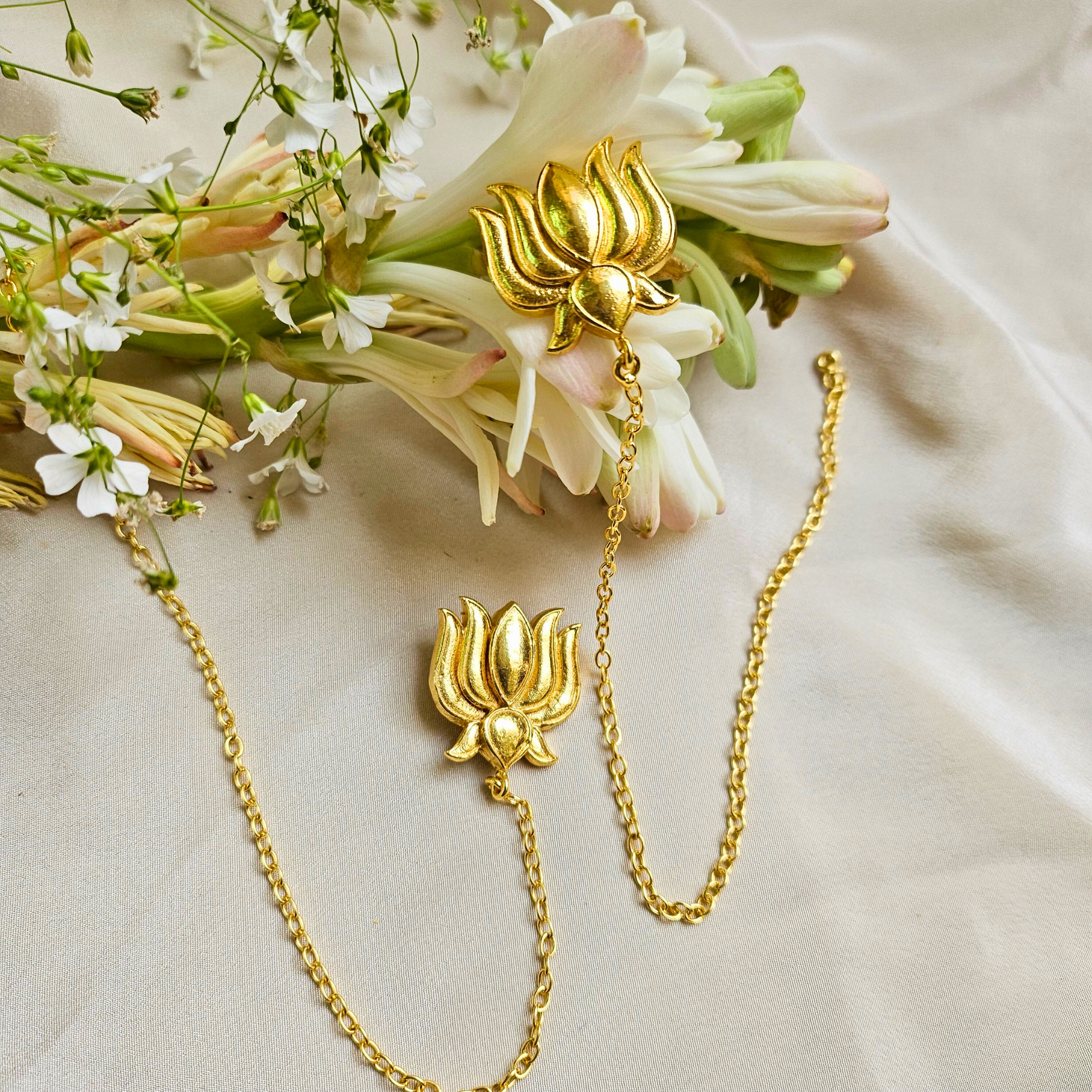 Indulge in luxury with the Kamal Ear Chain. This stunning accessory features a delicate chain designed to drape beautifully behind the ear. Made with high-quality materials, it offers a sophisticated touch to any outfit. Elevate your style and make a statement with the Kamal Ear Chain.