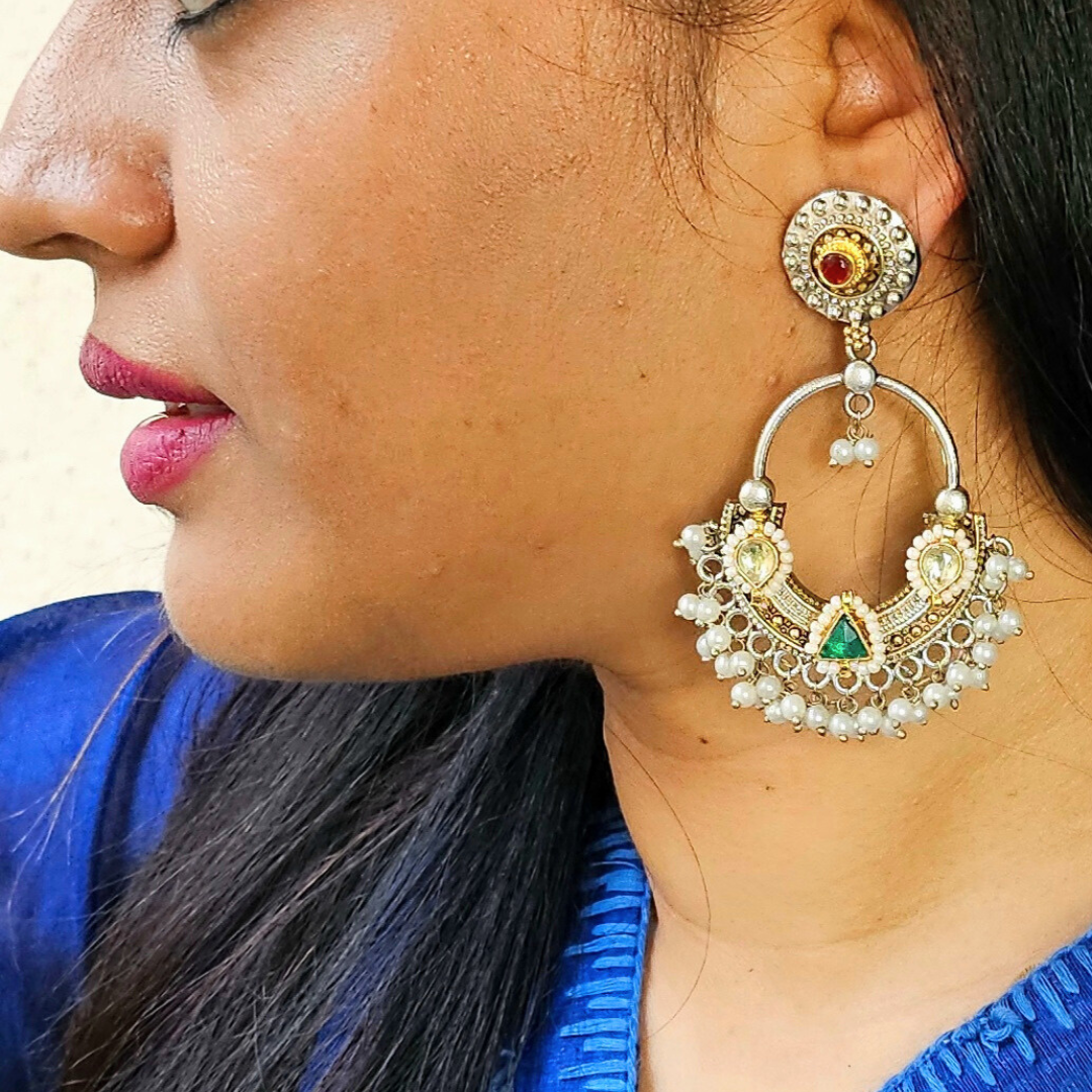 Crafted with a brass base, these earrings are lightweight and non-allergic, perfect for sensitive skin. The traditional Kundan design adds a timeless touch to your festive attire, making them a must-have for any jewelry collection.