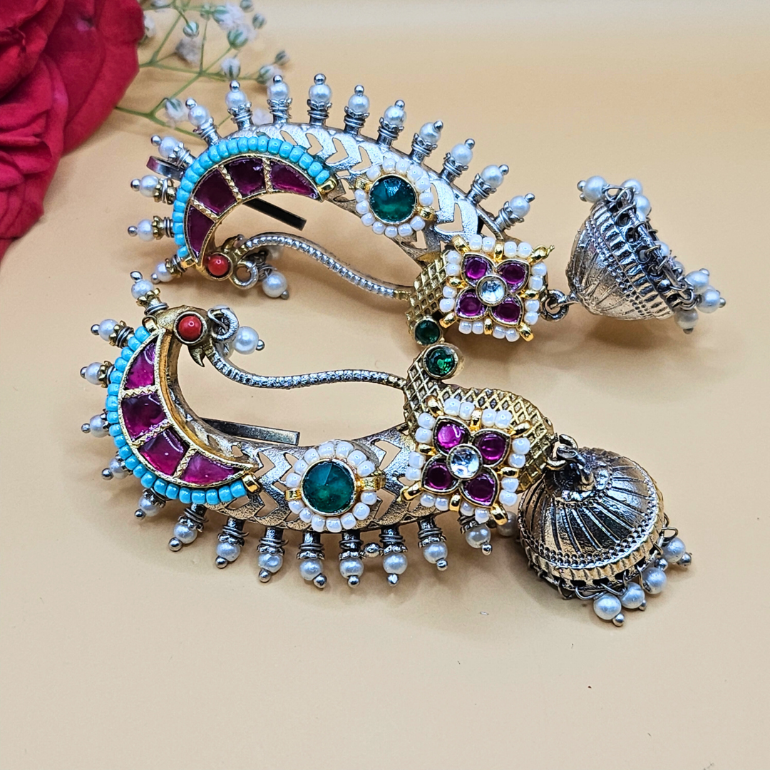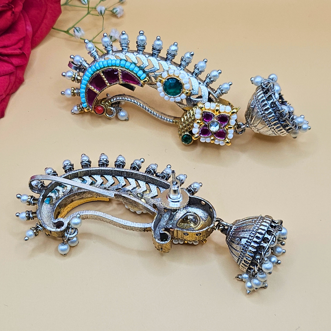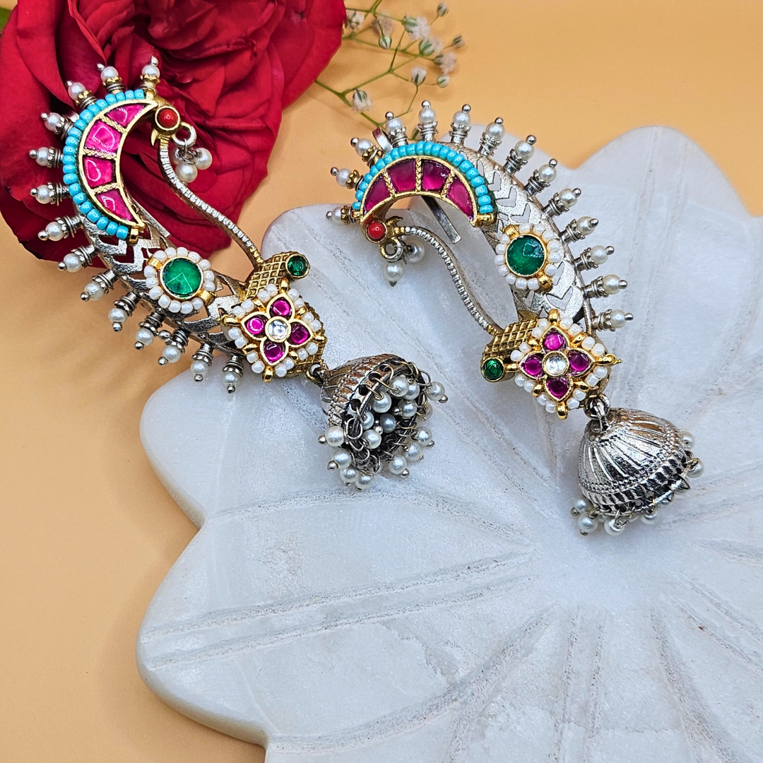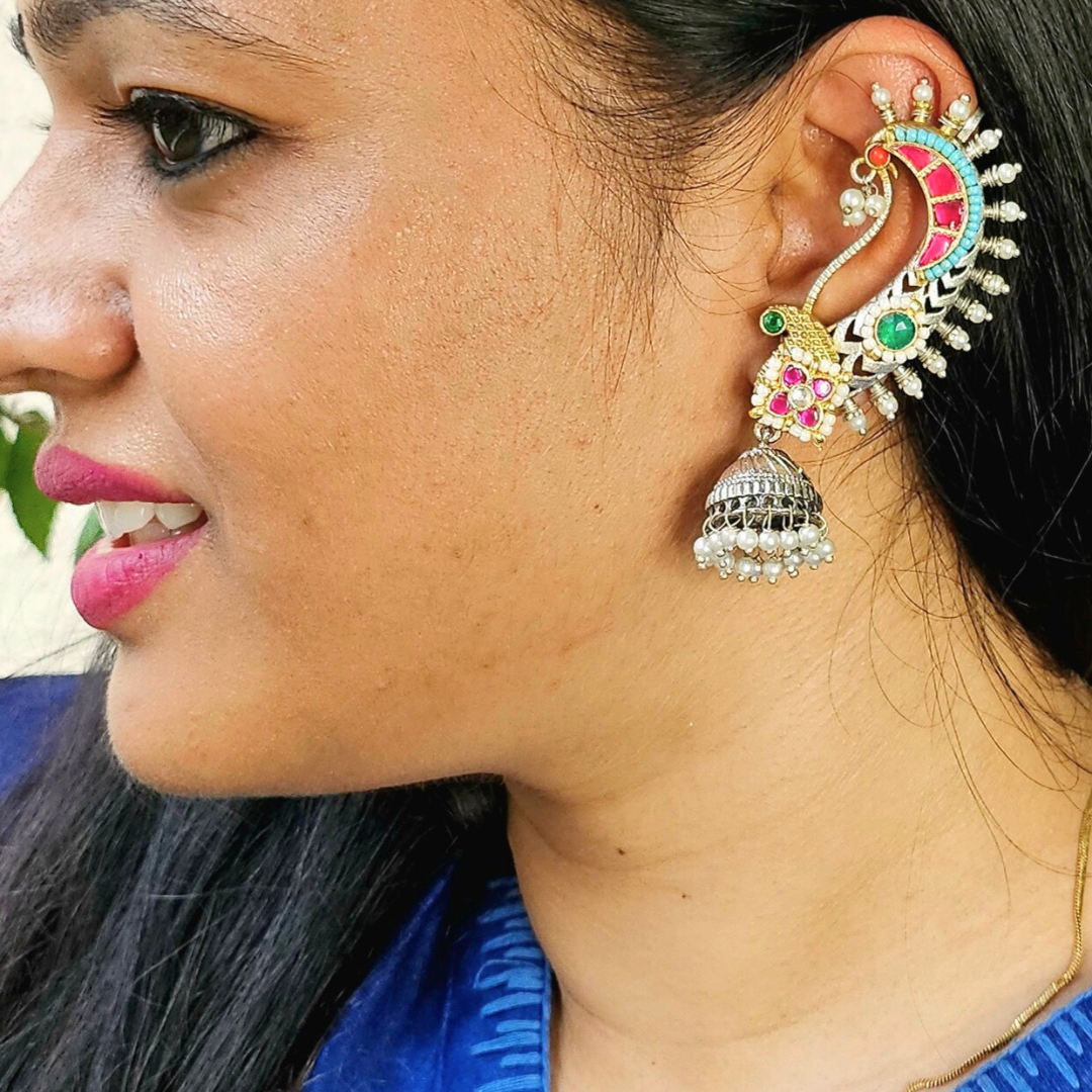 Our Pachi Kundan earrings are handmade by skilled Indian artisans, featuring a brass base for a lightweight feel. Non-allergic and safe for sensitive skin, these earrings showcase exquisite Kundan craftsmanship. Perfect for festive occasions, they add a touch of traditional elegance to any outfit, celebrating the artistry of Indian jewelry.
