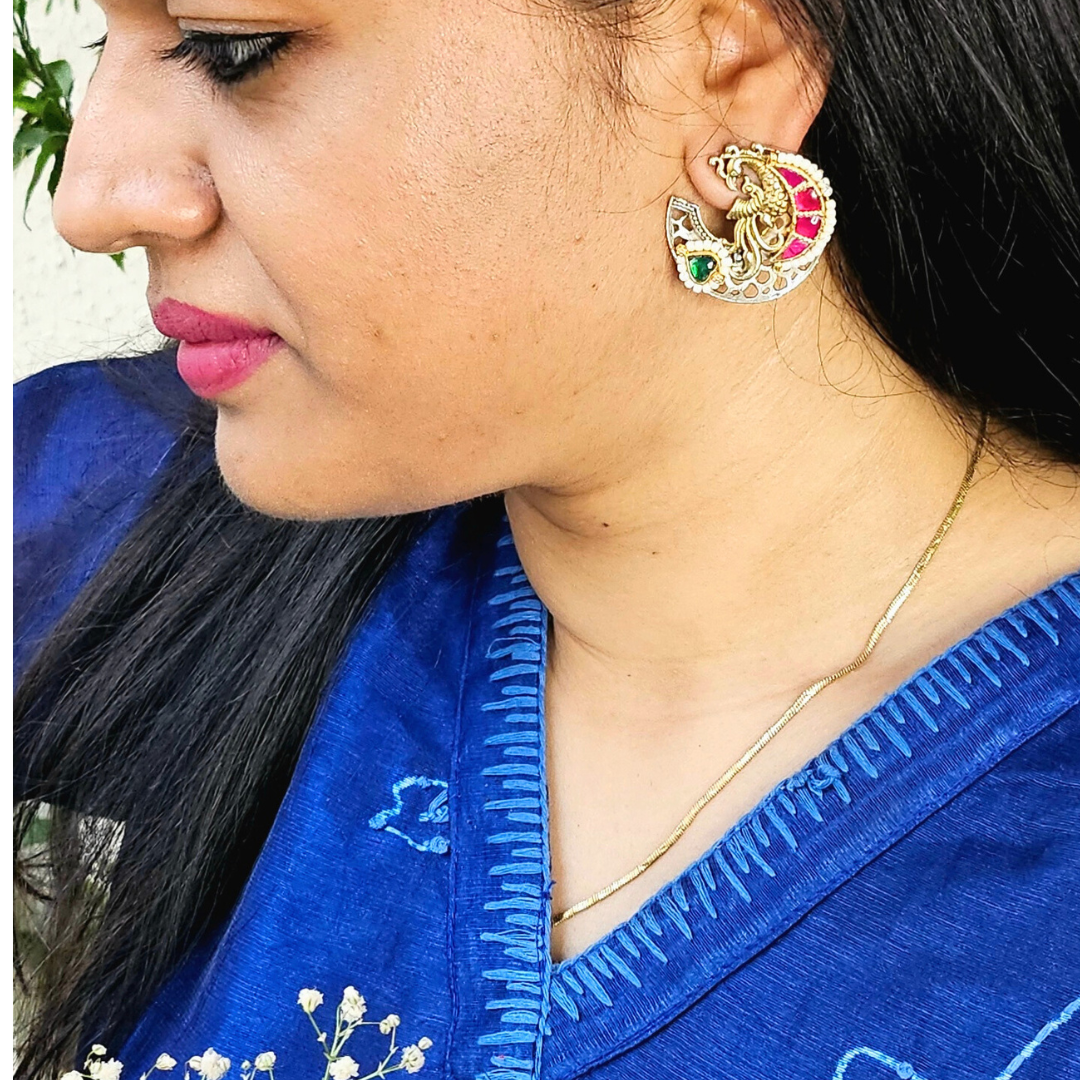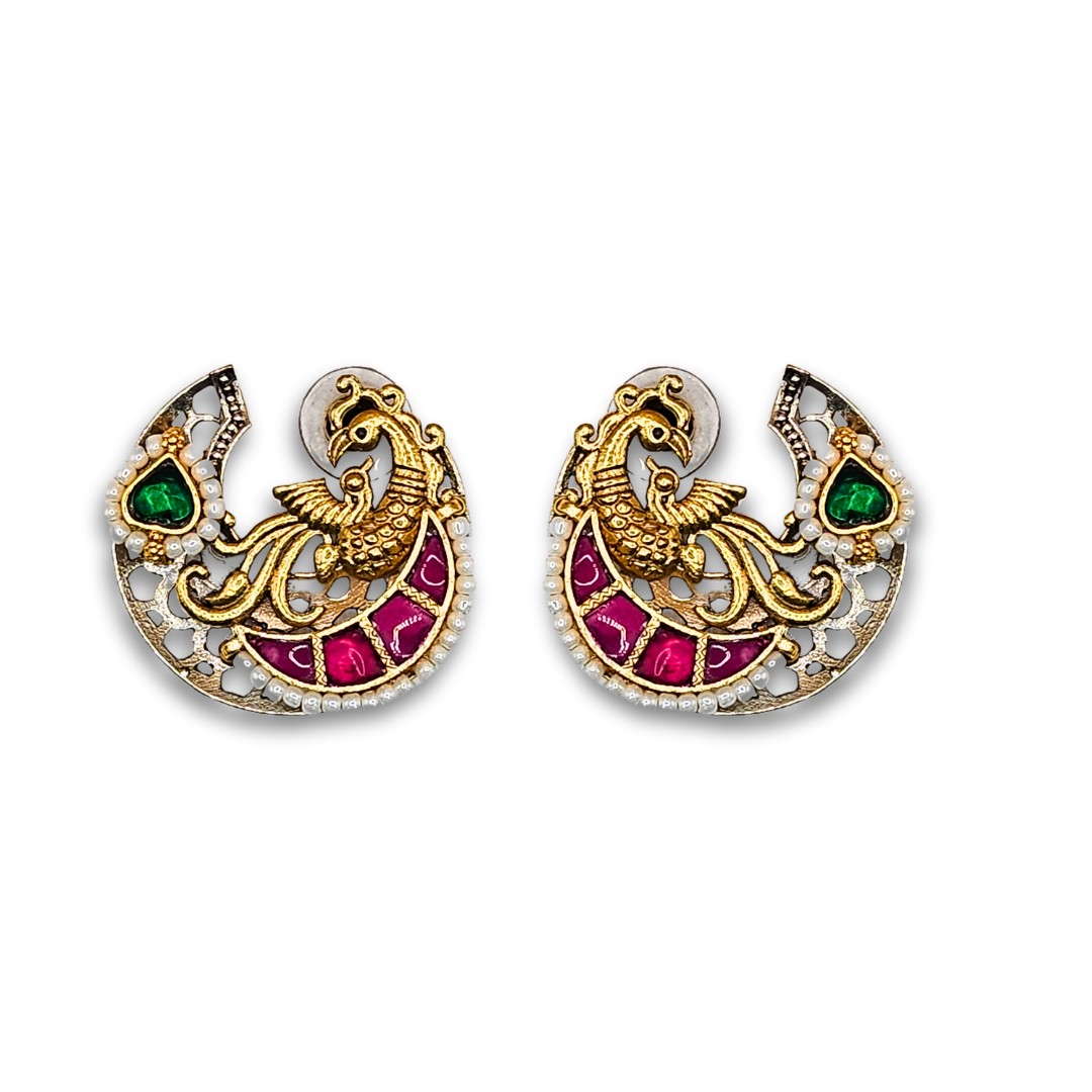 Pachi Peacock Navratri Studs
