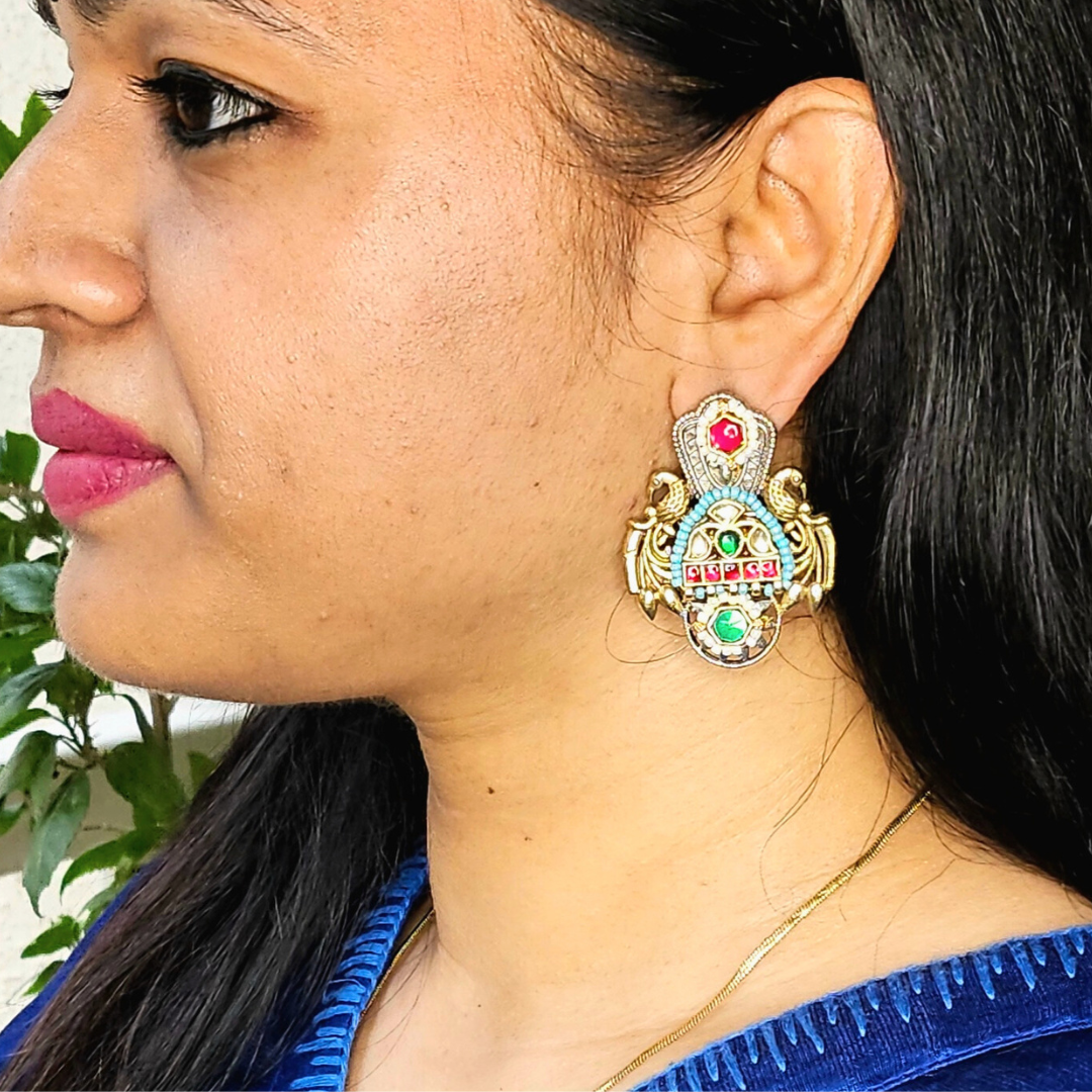 Crafted with exquisite detail, our Peacock Stud will elevate any outfit with its unique design. Made with precision and beauty in mind, these studs capture the elegance and grace of the majestic peacock. Perfect for adding a touch of sophistication to your wardrobe.