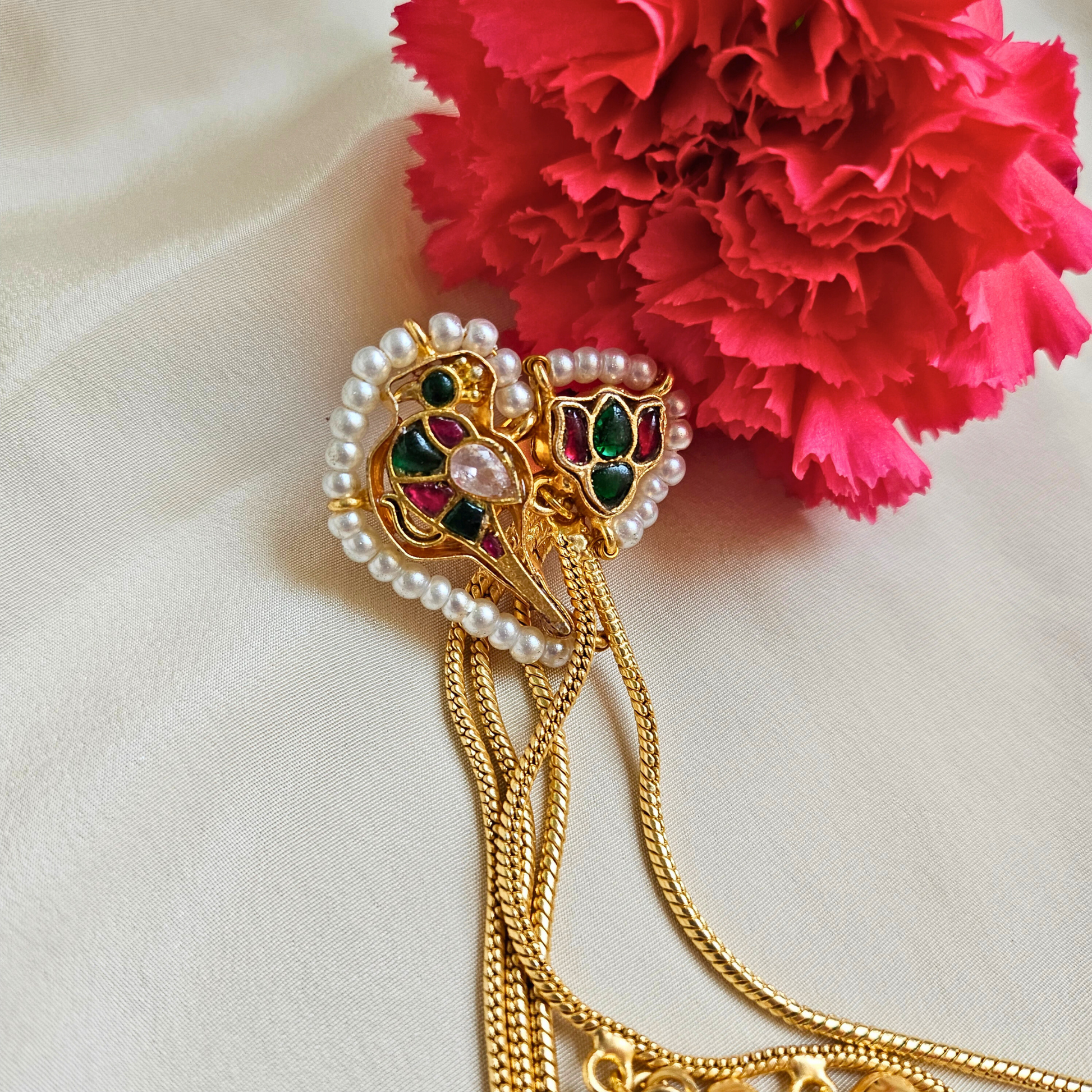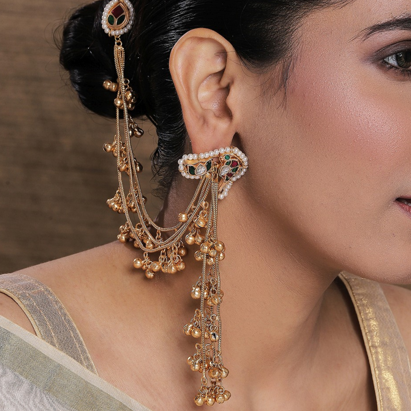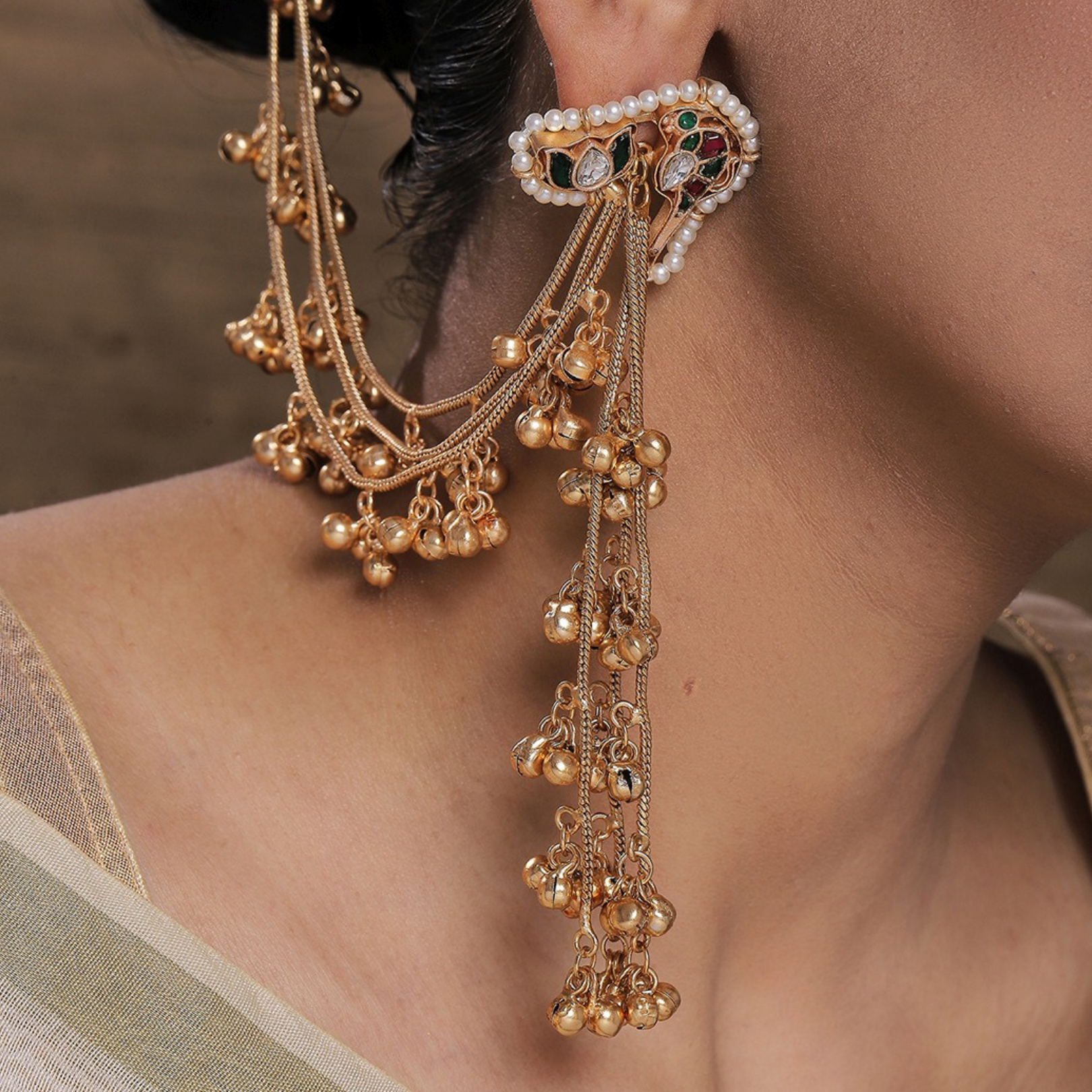 Elevate your look with these exquisite Ruhani Kashmiri Jhumke earrings. Handcrafted with intricate details by skilled artisans, these earrings are a must-have for any occasion. Add a touch of elegance and tradition to your wardrobe with these stunning pieces.