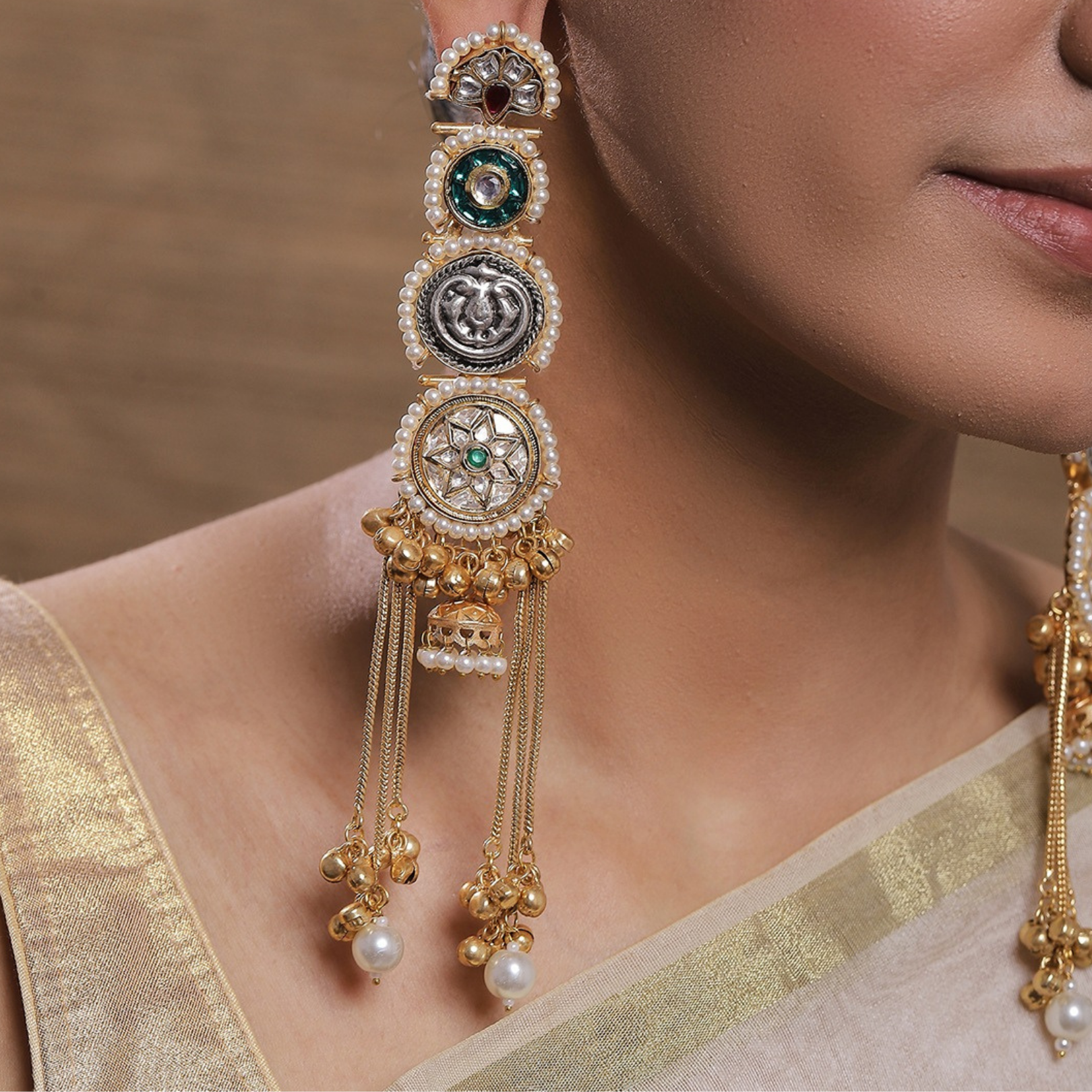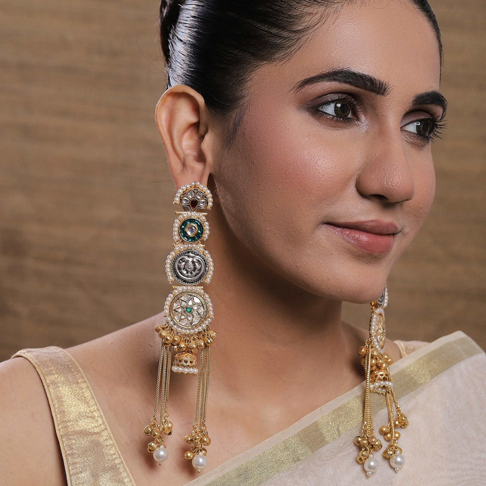 The Soha Kashmiri Jhumka Earring embodies timeless elegance with its intricate craftsmanship and delicate design. Inspired by traditional Kashmiri artistry, this piece adds a touch of refined sophistication to any ensemble, making it an ideal choice for special occasions and graceful everyday wear.