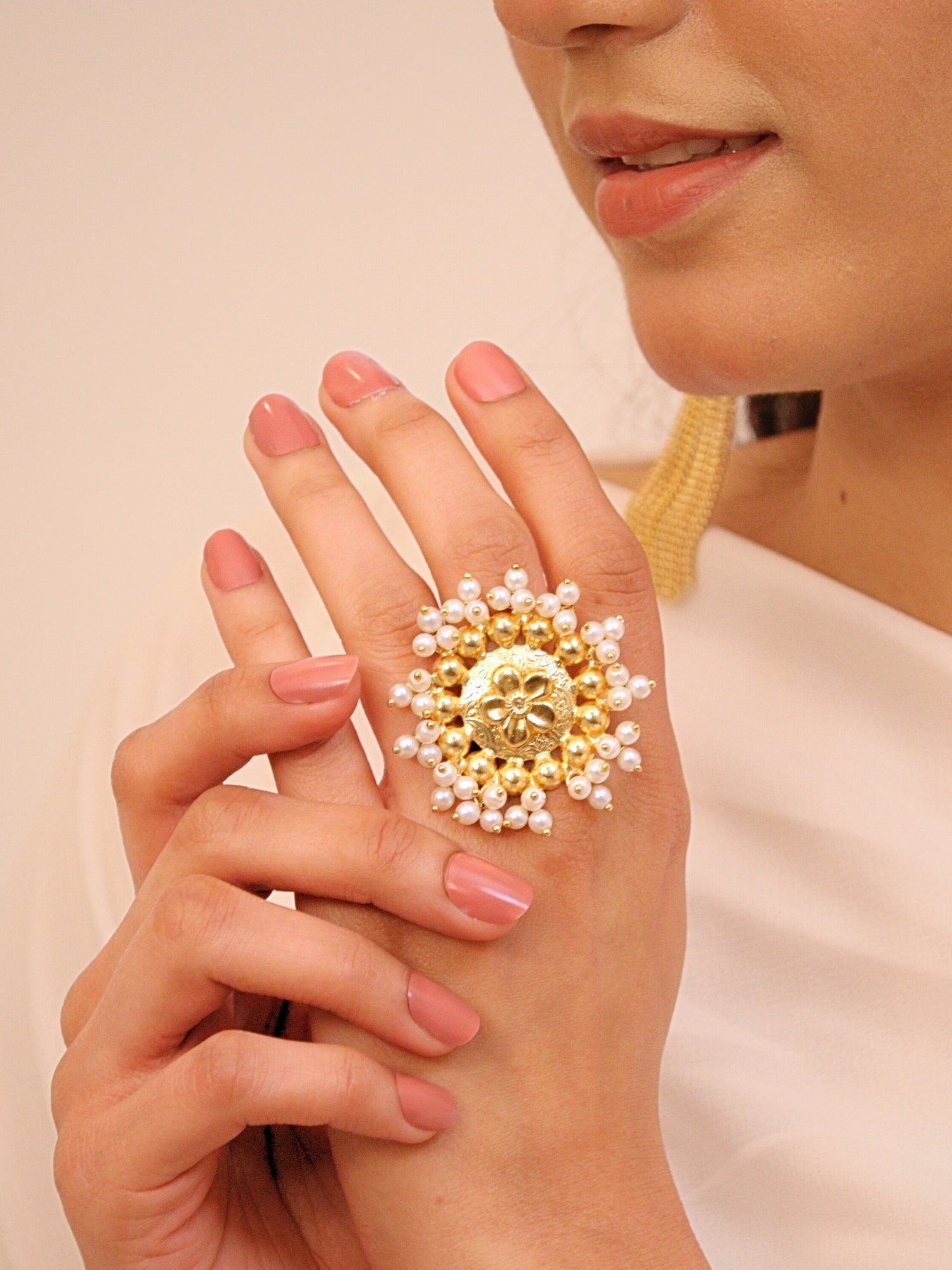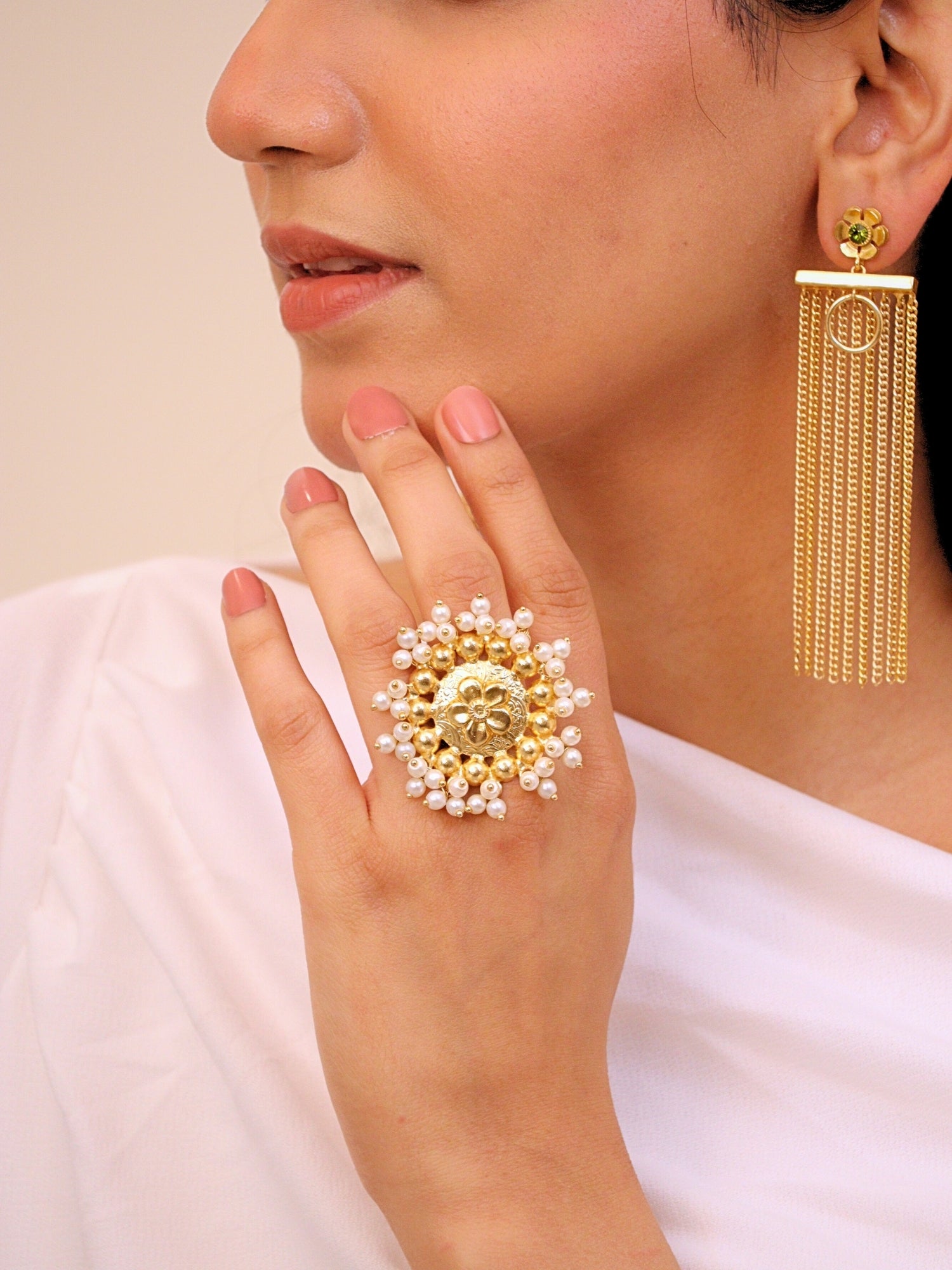 Viana Jewels Parinaaz Adjustable Brass Ring for Women 18K Gold Plated Handmade